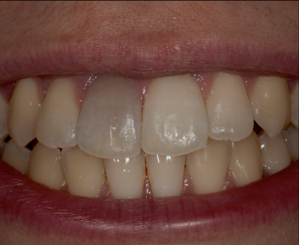 Ragazza di 18 anni con incisivo centrale 11 necrotico e scuro da trauma