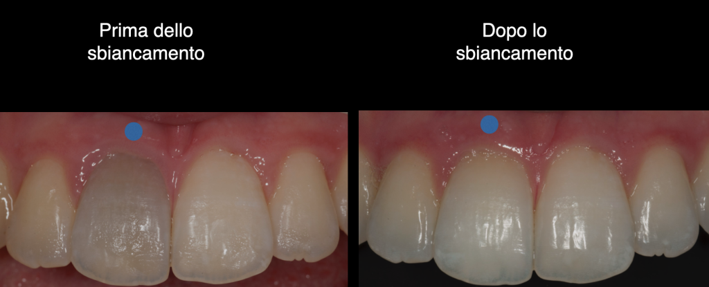 Trattamento endodontico, sbiancamento coronale interno e restauro diretto elemento 11